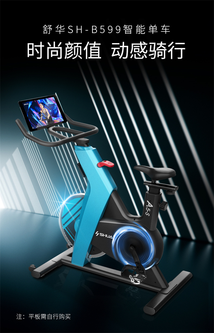 xc sports推荐健身器材-舒华动感单车SH-B599采用三角形车架搭配工字底座的稳定结构设计,骑行更稳定,承重可达125kg,手动磁控阻力设计,骑行时无物理摩擦,更顺畅静音,同时无需插电,使用更便捷。13kg磁控飞轮,足量均质,保障骑行时的惯性力及动平衡,骑行劲爽。