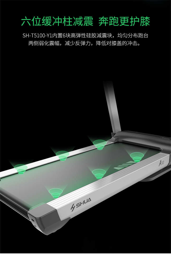 舒华家用跑步机SH-T6700(X6)采用18T+12T双层跑板,T2.2mm钻石纹的跑带,双层跑板全跑台减震,对您跑步中的膝盖进行全方位的呵护,选用接触式心率感应和无线心率感应等多种方式获取数据,跑步面积达520×1450mm,可承受130kg的使用者使用。